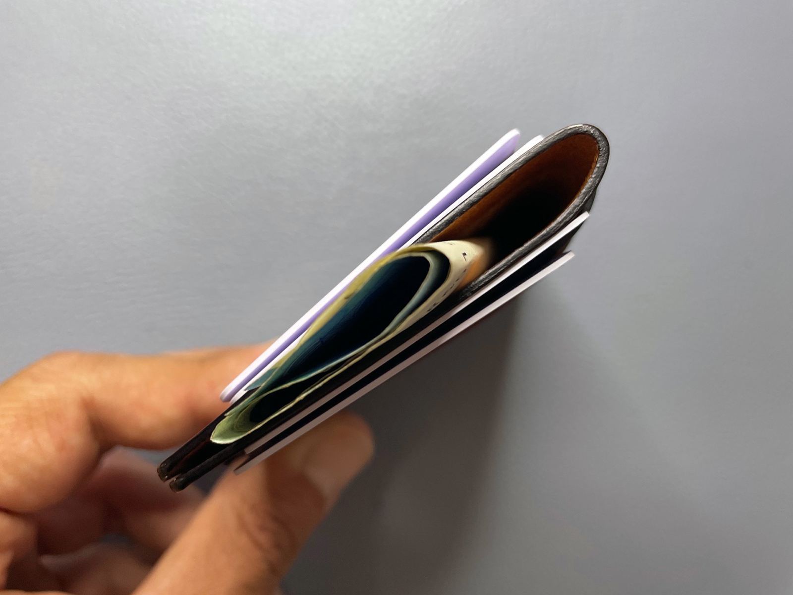 CAPACITY: Ideally 6/8 cards and banknotes folded twice/receipts/coins.