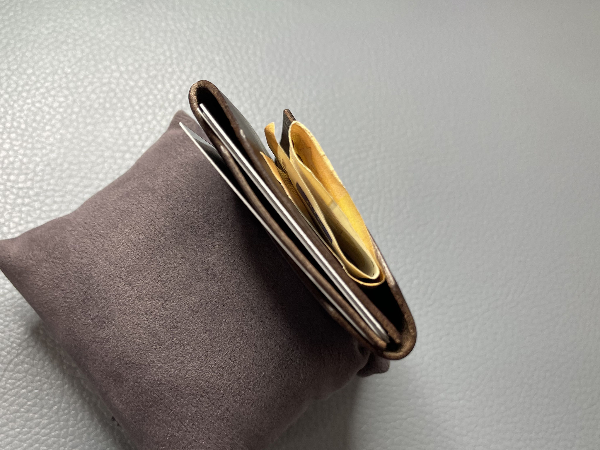 CAPACITY: Ideally contains 6 cards/receipts/coins in the middle and back slot and banknotes folded twice in the front slot.
