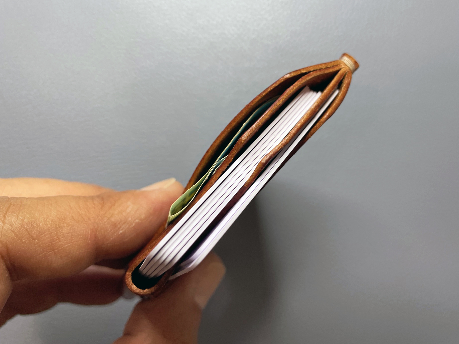 CAPACITY: Ideally contains 6 cards/receipts/coins in the middle and back slot and banknotes folded twice in the front slot.